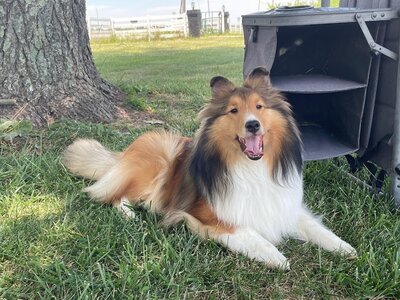Scarlett is a 6 year old sable female. She was our Covid puppy, so she didn't get used to going to dog shows, and doesn't enjoy them. She is a beautiful, friendly girl. She gets along well with other dogs and loves to run in the yard. She is up to date on all vaccines and vet visits, and has had genetic testing completed.