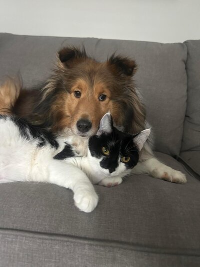 "Toby is our perfect big brother to our kids (2 and under!). He is incredibly gentle and patient, always up for walks and playing, and keeps a watchful, herding eye on his humans at all times! He is great with other dogs as well. Couldn't recommend Pam & Bud and their shelties more!"