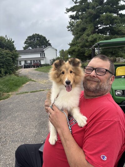 Between the two of us, we have over 25 years in dogs. Bud has extensive history with retrievers, excelling in obedience, field work, and breeding. Pam had her first Sheltie in 1990, and in 2016 Bud and Pam met Myra Harrison of Whiteoak Shelties, who has helped mentor them in the Sheltie world. Pam loves showing our dogs in AKC and UKC conformation, but her true love is partnering with one of our dogs to do Therapy Dog work at Cincinnati Children's Hospital.