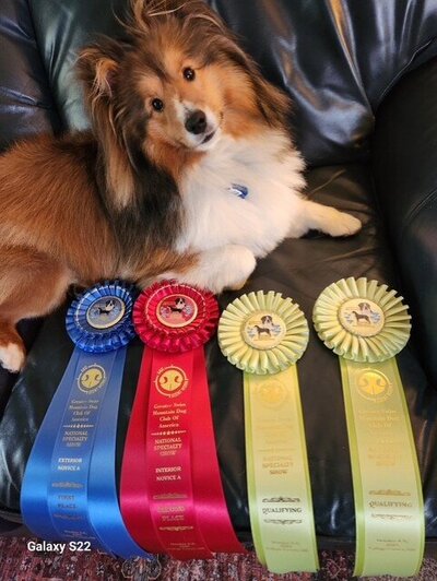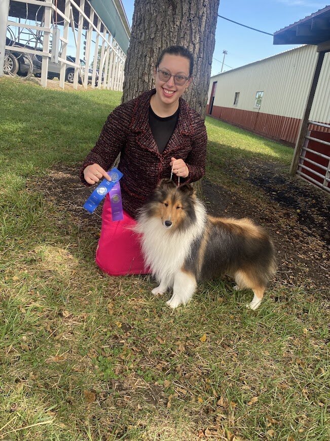 And then he met Pam. Pam had her first Sheltie in 1990, and had been wanting another one. When they met, Pam had a Collie named Buddy she had hoped to train as a service dog for her youngest daughter. Buddy had other plans. So Bud researched local breeders and got our foundation bitch, Whiteoaks Jean Louise Finch, in 2016. Scout was the beginning of the next chapter.